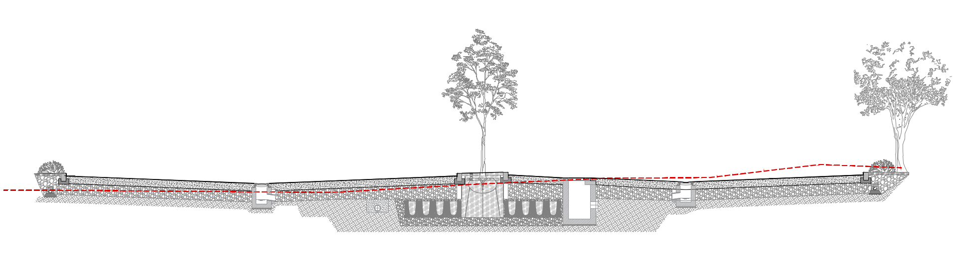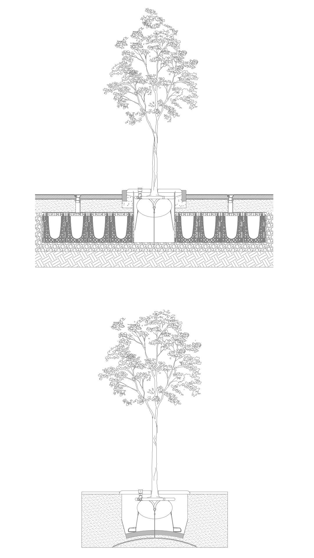 Ono što projekt čini inovativnim je podzemno sidrenje stabala, koje je prvi put u Hrvatskoj proizvela tvrtka GreenBlue Urban, čime je pridonio održivom razvoju urbane zelene infrastrukture. Sustav GreenBlue Urban RootSpace sastoji se od nosivih ćelija izrađenih od 100% recikliranog materijala, s preko 95% otvorenog praznog prostora za maksimalni volumen ukorijenjenosti stabla, stvarajući optimalne biološke uvjete tla za maksimiziranje korijena i time promiču rast i zdravlje stabla. Implementacijom ovog sustava uvelike se smanjuju vjetroizvale drveća koji su vrlo česti na ovoj lokaciji. Sustav upravljanja podzemnim rastom korijena omogućuje dodatno podzemno sidrenje stabala i navodnjavanje te omogućuje da stablo ne počne naglo propadati zbog popločenog okoliša kada postigne svoje najveće dimenzije.