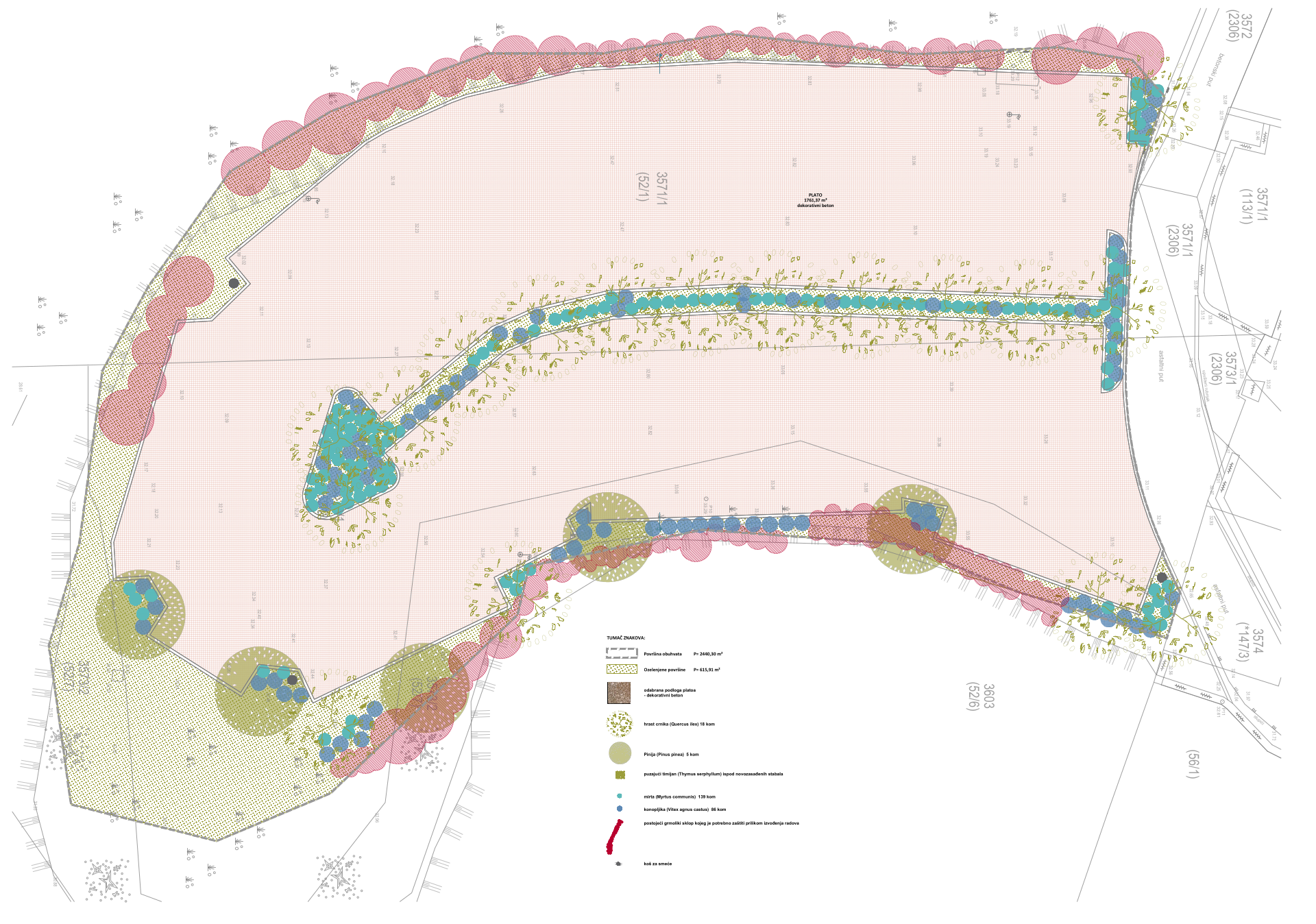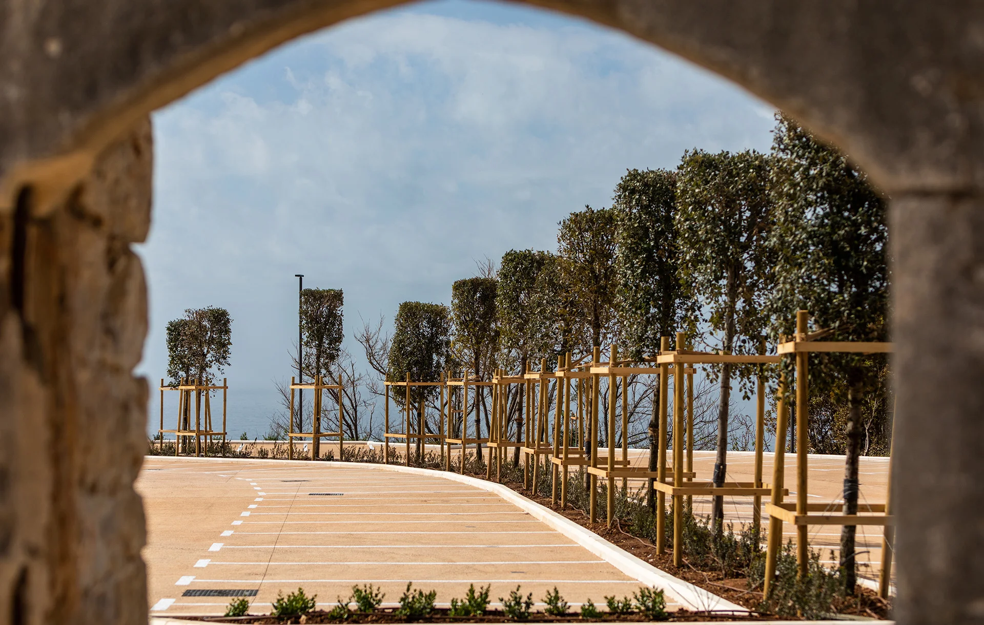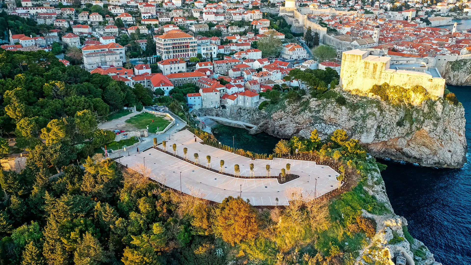 Projekt uključuje krajobrazno uređenje platoa, u vidu novog drvoreda i novih zelenih zaštitnih zona te njegu i dogradnju postojećih nasada. Uz zapadnu liniju opsega, na vrhu padine prema predjelu Danče, zadržala se pronađena vegetacija, uglavnom bagrema i grmlja lovora. U središnjem dijelu platoa zasađeno je stablo hrasta crnike kako bi se fragmentirala jedinstvena površina, a zelene površine su spojene i sa točaka centra grada i vidikovca dobivena je vegetacija u više planova unutar panorame. Uz južni i istočni rub obuhvata formirana je vegetacijska barijera kako bi se spriječili pogledi na iscrpljeni plato sadnjom visokih stabala hrasta crnike i bora, a sve na način da se ne uništi postojeća vegetacija prizemnog sloja i postojećih stabla. U prizemlju je izvršena sadnja grmovitih vrsta s područja mediteranske makije, halofitnih vrsta: mirte, prstaste konopljike, divlje i puzave majčine dušice. Ovaj projekt uključuje i implementira: sustav automatskog navodnjavanja, novi sustav javne rasvjete kao i sustav vodoopskrbe i oborinske odvodnje s upojnim poljem. Izmijenjena je podloga platoa i površinska obrada podne obloge od dekorativnog betona s vidljivim kamenim agregatom (CEMEX Coolir Advanced), a sve usklađeno prema uzorku prihvaćenom od strane Ministarstva kulture u Dubrovniku.